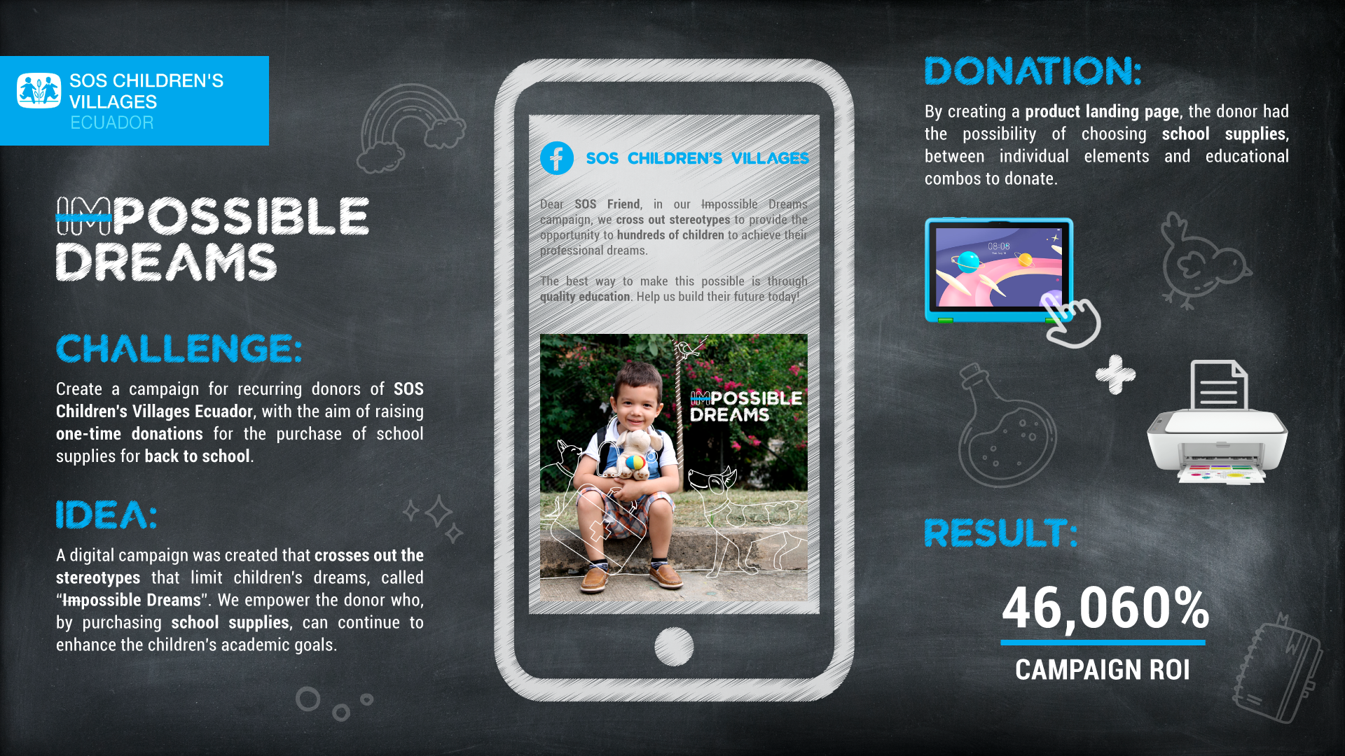 Digital back-to-school campaign aimed at recurring donors of SOS Children’s Villages Ecuador with the objective of obtaining a one-time donation for the purchase of school supplies.