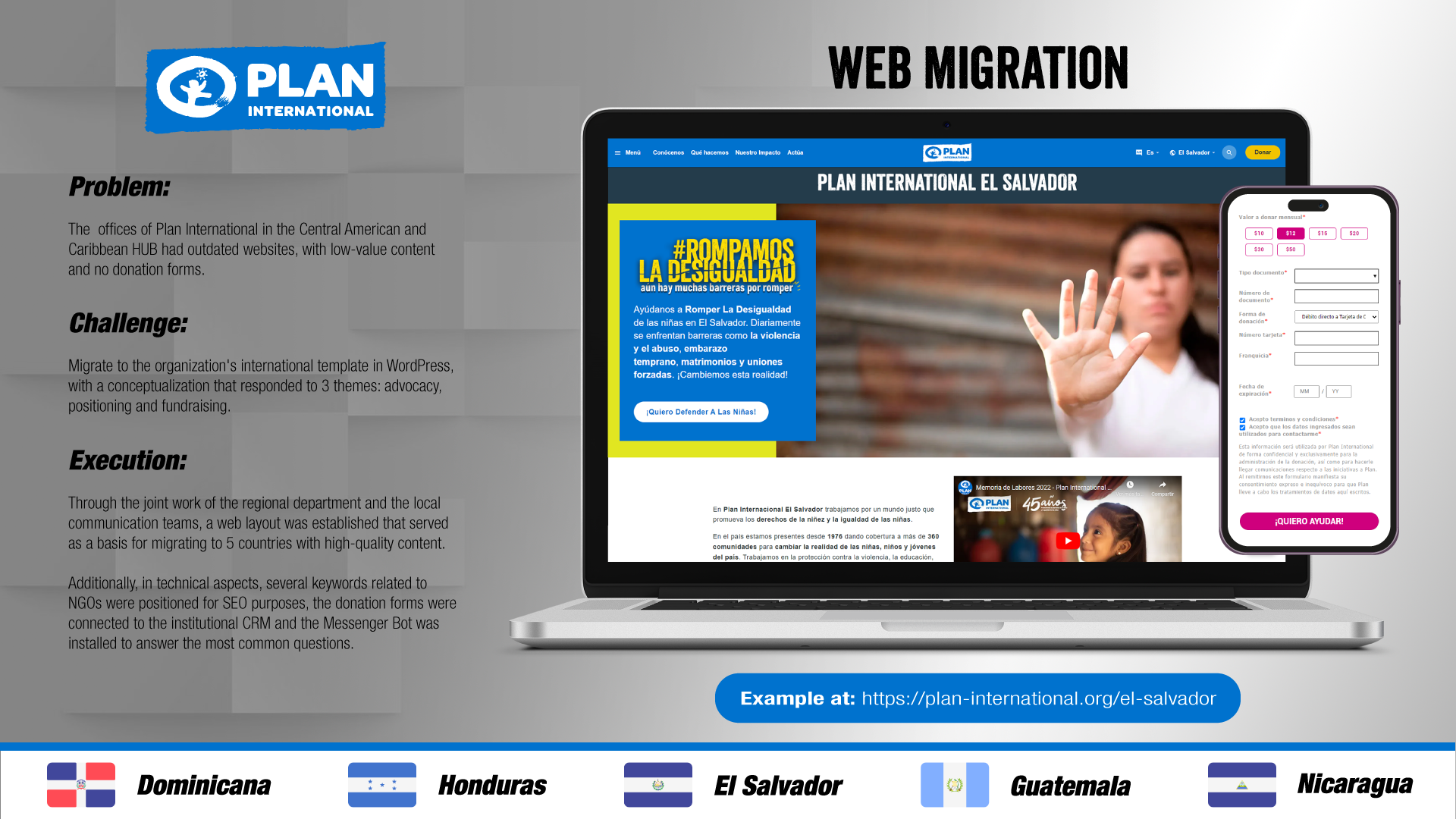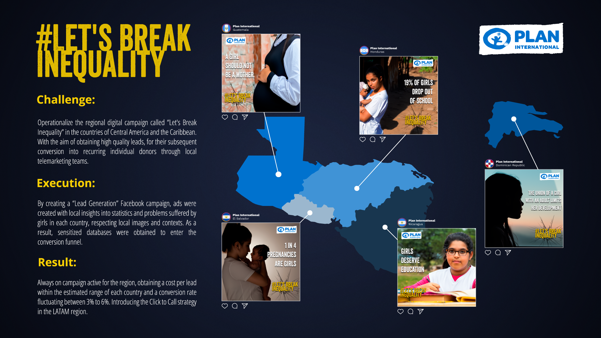 Management of the regional digital campaign to introduce individual donors through C2C for the countries of Central America and the Caribbean for Plan International.